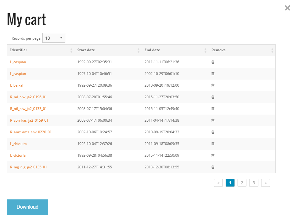 This service allows to download Hydroweb data in format ASCII, JSON or CSV.